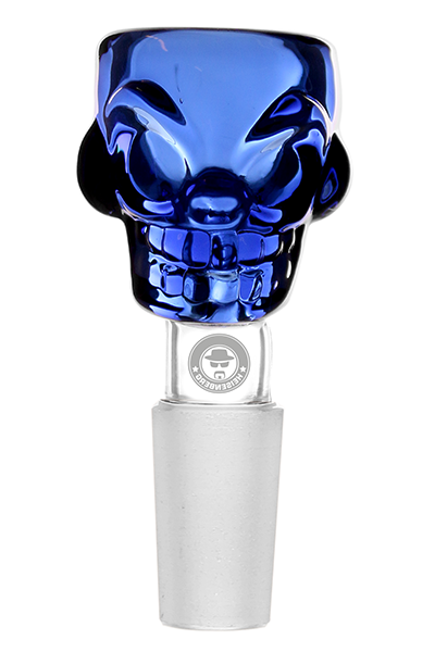 Tento skleněný kotlík na bong je osazen zábrusem o velikosti 14,5 mm a je zdoben vyrytým obrázkem lebky Heisenberg. Kotlík je vyroben v modré barvě ve tvaru lebky, která mu dodává stylový vzhled.